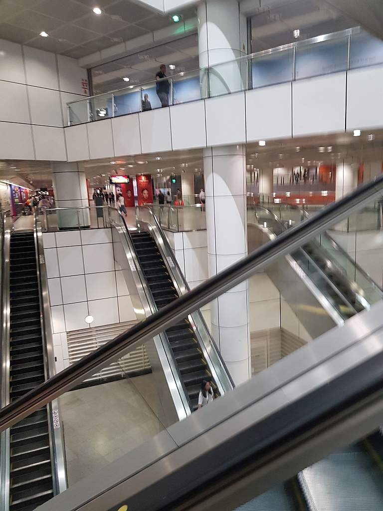 Nachdem wir uns in der Hitze im Zoo geschlagen geben mussten, sind wir mit MRT und Bus zum Treffpunkt gefahren – eine Fahrt, die etwa 1 1/2 Stunden gedauert hat. Nicht zuletzt, weil so mancher Transfer unglaublich umständlich gebaut wurde (ein Stockwerk runter, 2 hoch, Treppe und wieder ganz runter)