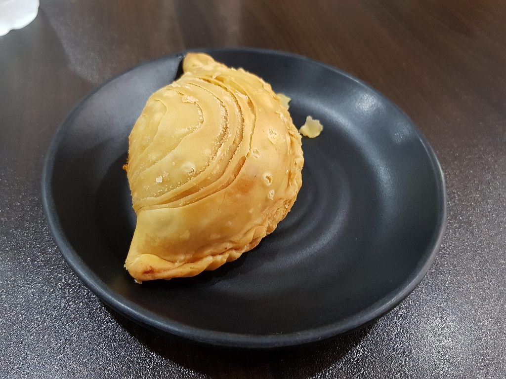 Zurück zum Curry Puff: Das sind Teigtaschen, die frittiert werden, was man allerdings nicht merkt. Der Teig ist eher trocken, das Innere saftig und gut gewürzt.