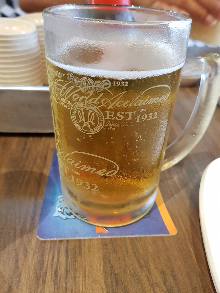 Hier gab es zwei Dinge: Erstens ein Bier (Tiger), um uns etwas herunterzukühlen …