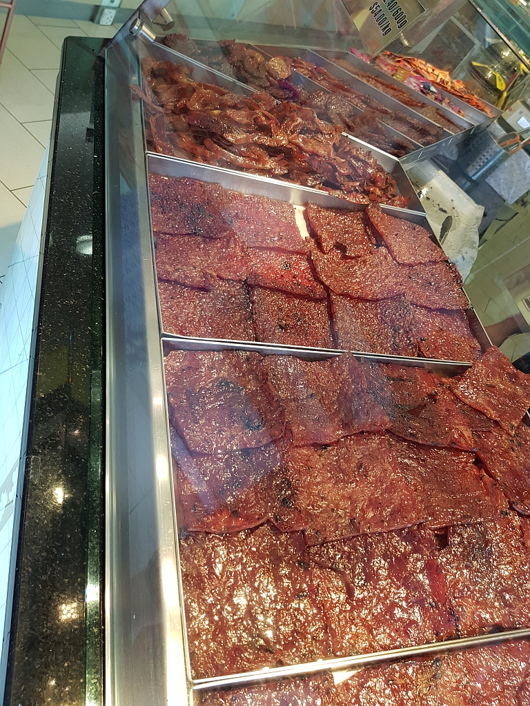 Hier in Singapur ist es ein Zeichen von hoher Wertschätzung, wenn man jemandem Fleisch von diesem Shop hier schenkt. Die Chinesen machen dies traditionell zum chinesischen Neujahrsfest und in diesen Tagen kann es sein, dass die Schlange vor dem Laden durchaus mehrere Stunden Wartezeit bedeutet.