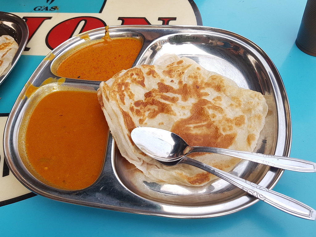 OK, das ist nicht nur Brot, sondern traditionelles Roti Prata, ein aus Nord-Indien stammendes Brot, was mit Curry gegessen wird und mit viel Öl zubereitet wird.