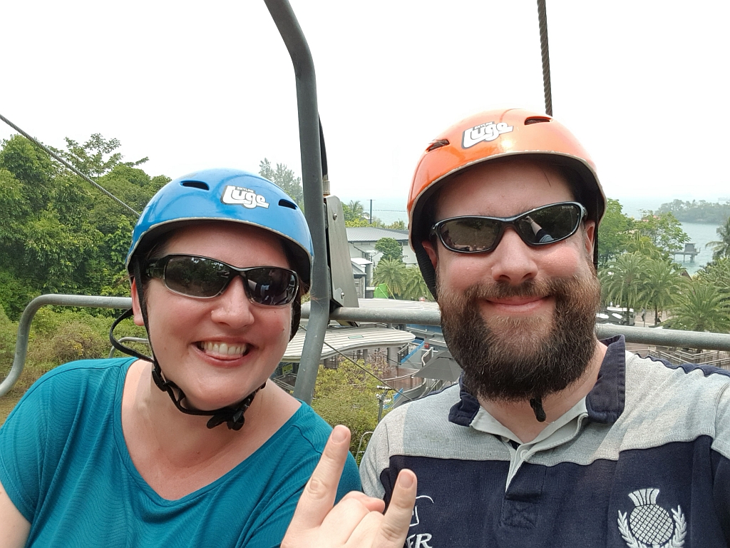 Für den heutigen Tag hatten wir nicht wirklich ein Programm. Eine der Ideen, die unser Guide von gestern erwähnte war es, auf die südlich von Singapur gelegene Insel Sentosa zu fahren. Dort sollte es (Zitat): Auch bei den Temperaturen angenehm sein! (Zitat Ende).