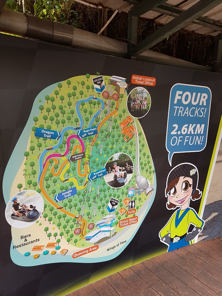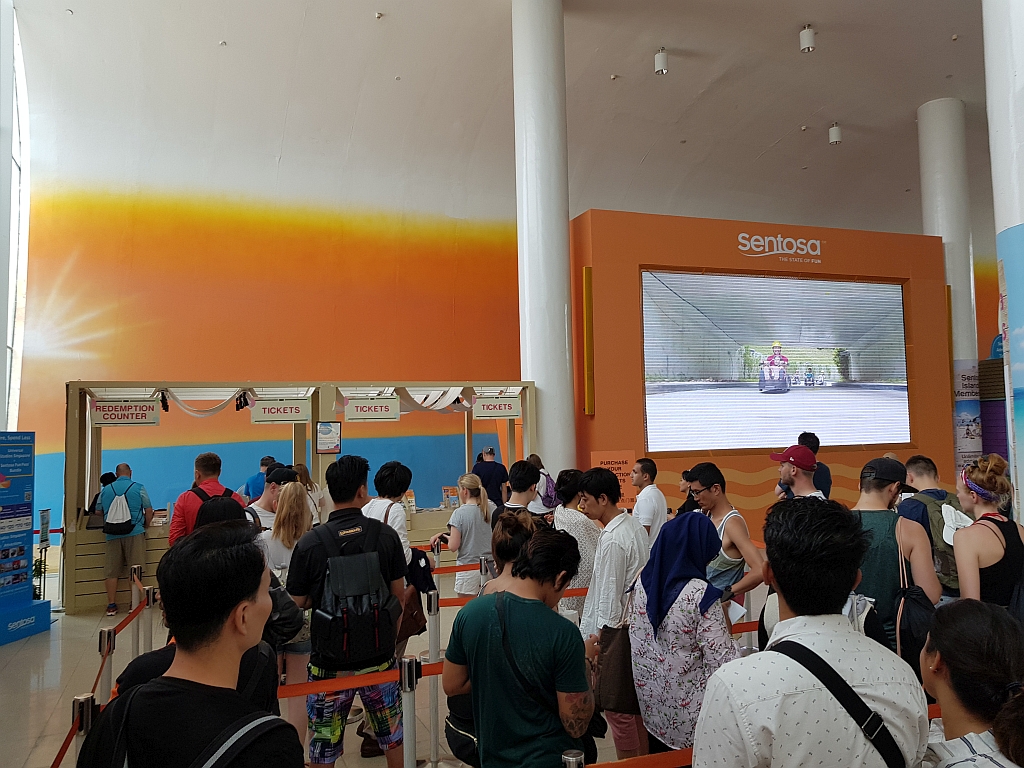 Wir sind mit zwei MRT-Fahrten zur Haltestelle Harbourfront gefahren. Dort beginnt nämlich der Sentosa Express, der uns für schlanke 4 Singapur Dollar (etwa 3 Euro) auf die Insel Sentosa bringt.