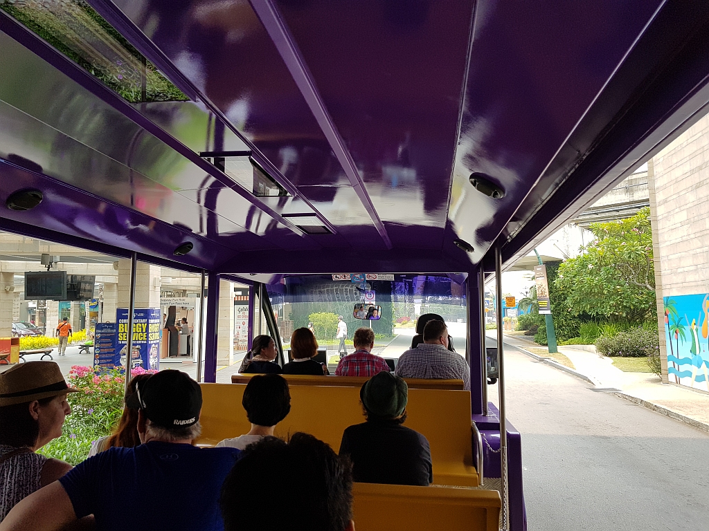 Um uns erst einmal einen Überblick zu verschaffen, sind wir in die sogenannte „Beach Tram“ gestiegen. Eventuelle bahntechnische Hoffnungen von Jens verflüchtigten sich allerdings beim Anblick des riesigen Golf Karts.