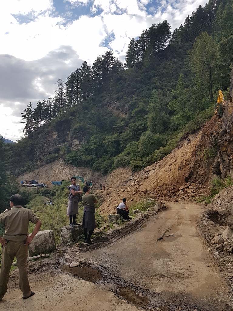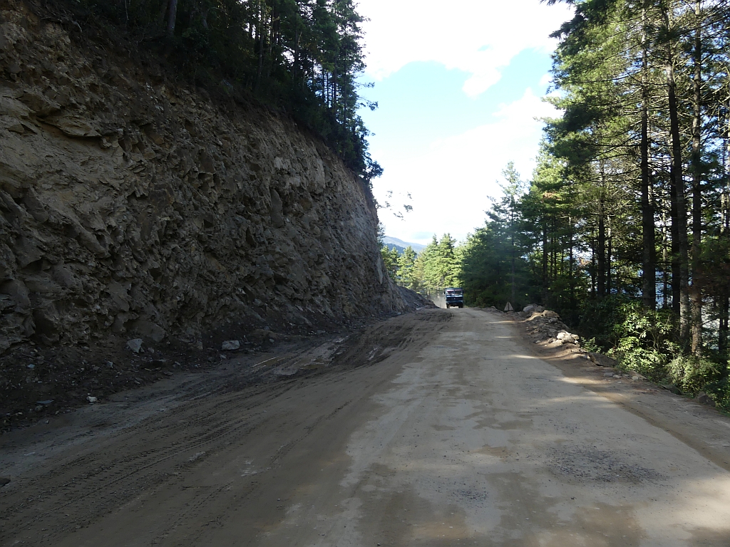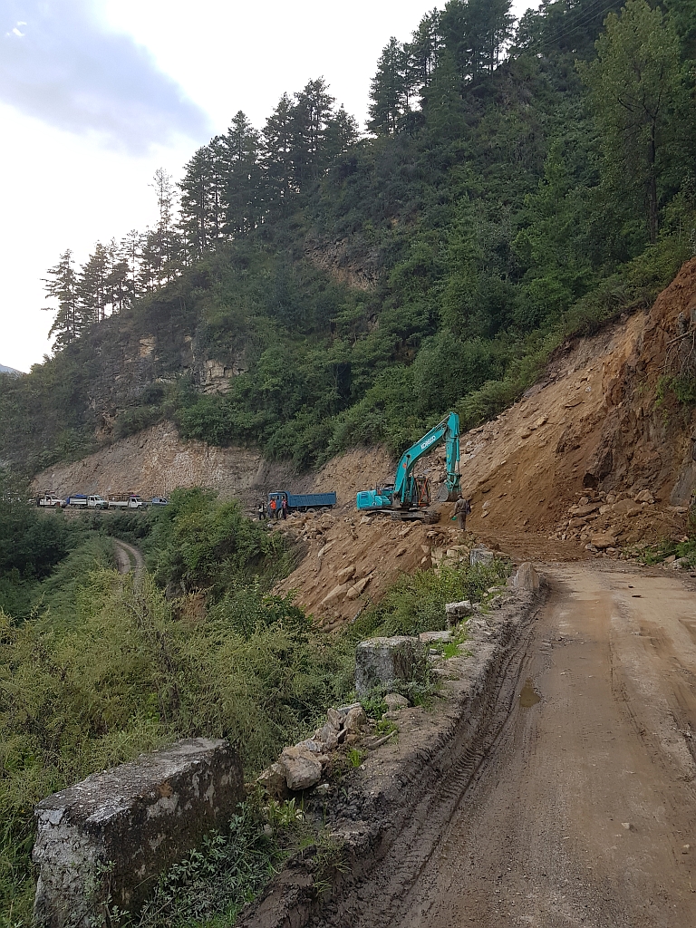 Vorab wurden wir von Bhutan Travel darüber informiert, dass sich die Fahrzeiten in Bhutan durchaus verlängern können, je nach Tageszeit, Beschaffenheit der Strasse und eventuellen Arbeiten. Das Straßennetz in Bhutan unterliegt einem unglaublich schnellen Wandel und muss rasant von Feldwegen auf zweispurige Strassen erweitert werden – was im Gebirge nochmal schwerer ist, als zum Beispiel in Köln.