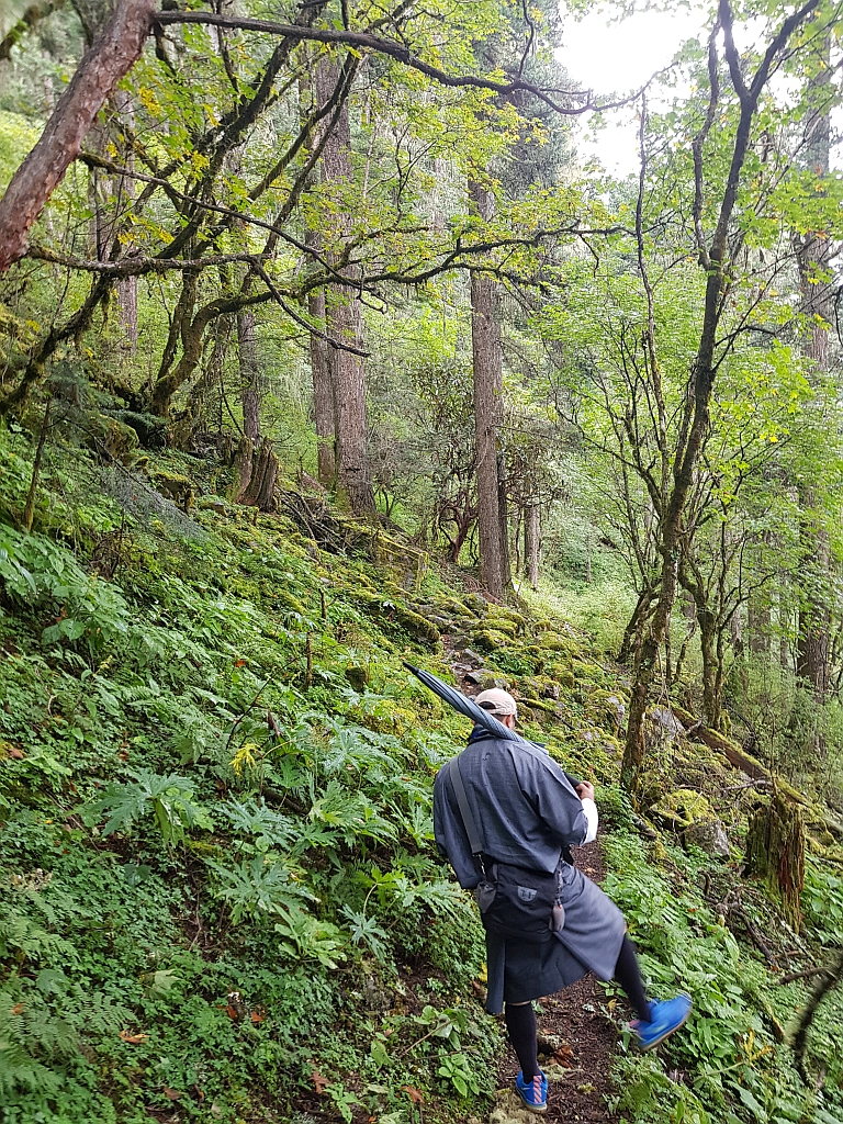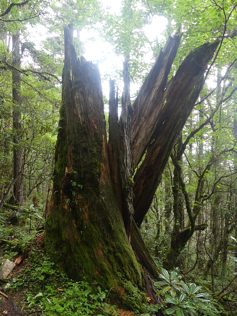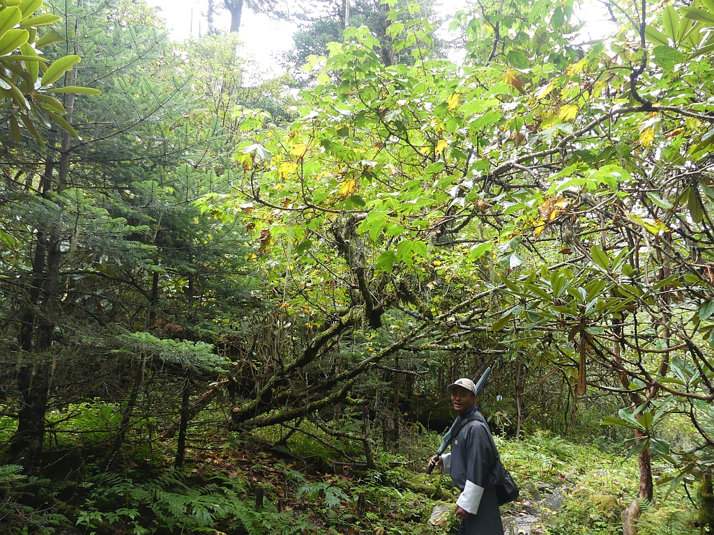 Unser Guide hat uns dann auf dem Weg immer wieder mal angehalten und uns die Pflanzen (27 verschiedene Rhododendron-Arten) erklärt und gezeigt. Und auch so war es wie im Regenwald und sehr vielfältig, was wir gesehen haben.