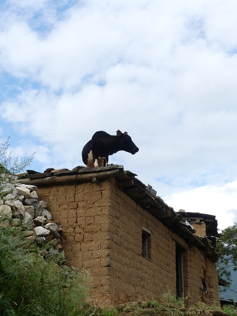 Warum diese Kuh auf dem Dach steht? Keine Ahnung. Wir wurden jedenfalls genau beobachtet, ob wir nicht Unsinn machen.