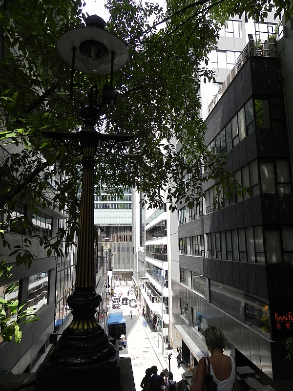 Um 10 Uhr haben wir uns mit ihr an der MTR Station Central getroffen. Da waren es übrigens schon 24 Grad und eine Luftfeuchtigkeit von 80% – das sind echt miese Bedingungen für einen ausgedehnten Spaziergang! Egal – von da aus ging es kreuz und quer durch Hong Kong Island.