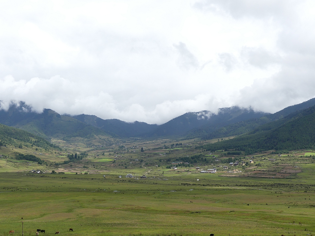 Auf dem heutigen Programm: Eine 3 stündige Fahrt in das Phobjikha Tal, auch das Tal der Schwarzhalskraniche genannt. Das Tal wird auch das Gangteng Valley genannt, nach dem gleichnamigen Tempel, der sich am Eingang des Tals befindet. Selbigen würden wir als erstes besuchen.