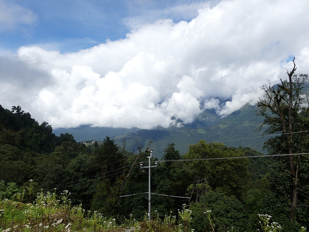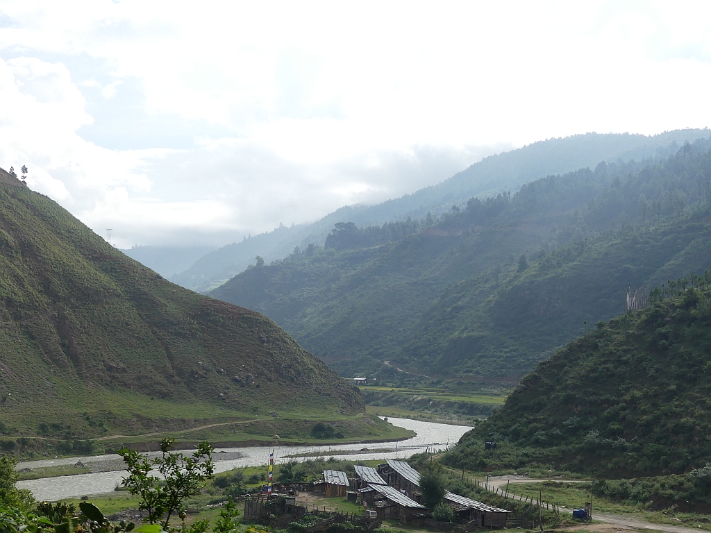 Oben angekommen ging es dann genau diesen Fluss entlang nach Osten. Womit wir übrigens alle 3 geteerten Strassen von Wangdue Phodrang befahren haben.