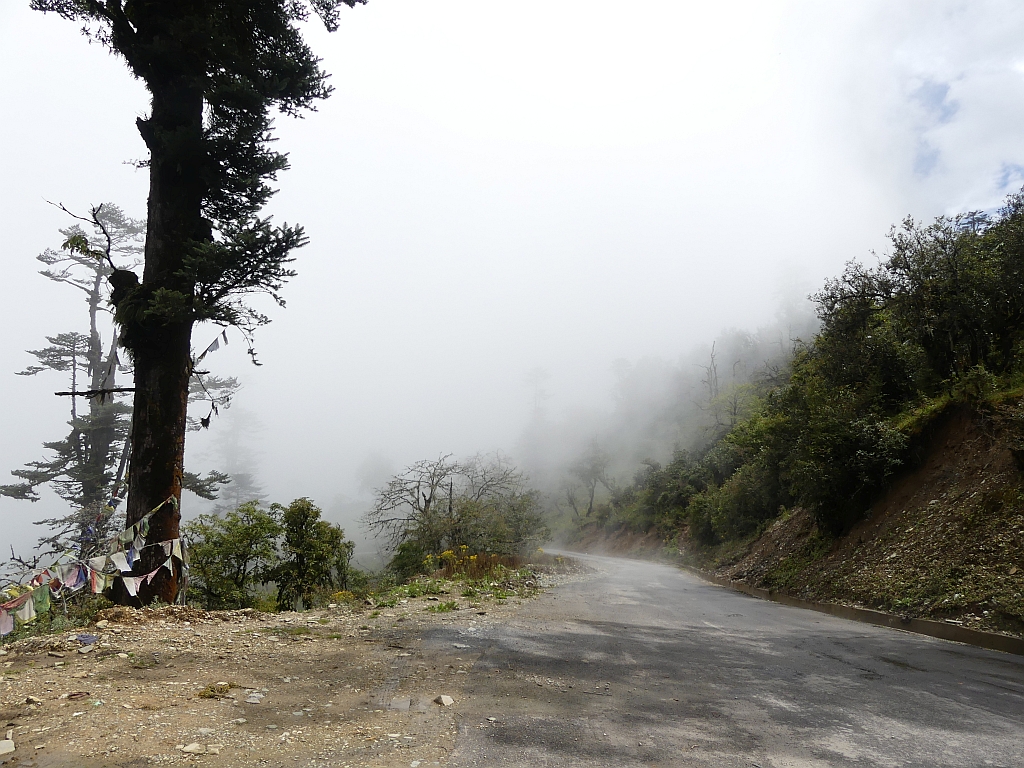 Die Strasse nach Phobjikha ist zwar geteert, das macht die Fahrt aber nicht weniger … anstrengend. Zumindest für den Fahrer.