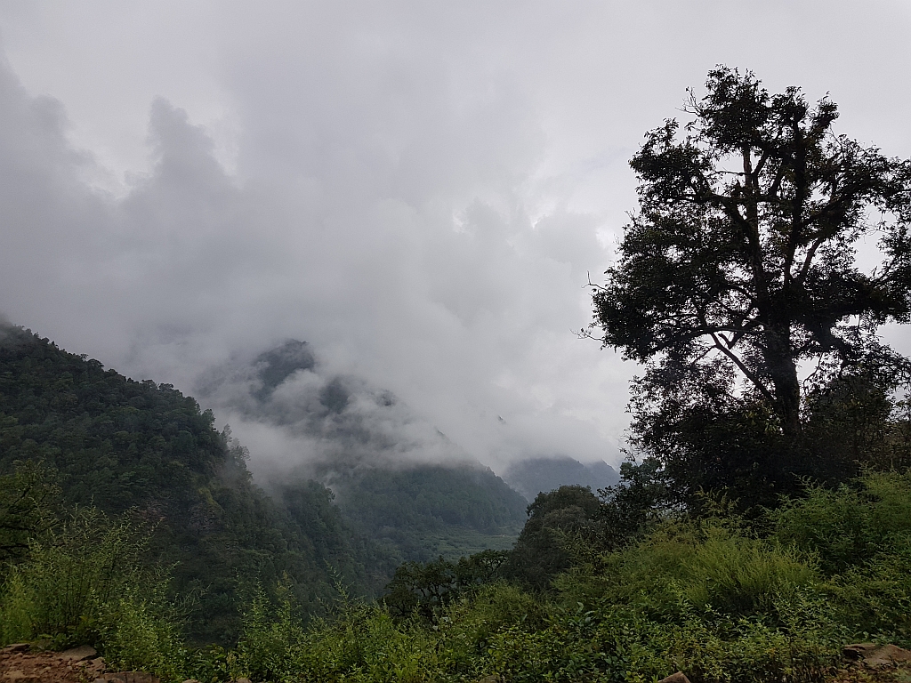 Da man ja in Bhutan quasi nirgendwo hinkommt, ohne über mindestens einen Pass zu fahren, erlebt man während der Fahrt wieder alle Wetterlagen: Von Sonne über Nebel bis Regen.