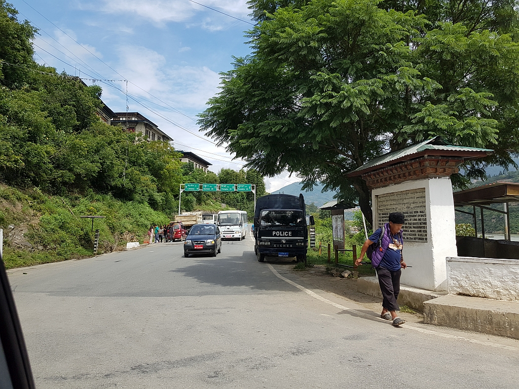In Wangdue dann gab es schon wieder etwas mehr Verkehr. Und sogar einen Unfall, den die Polizei aufnahm.