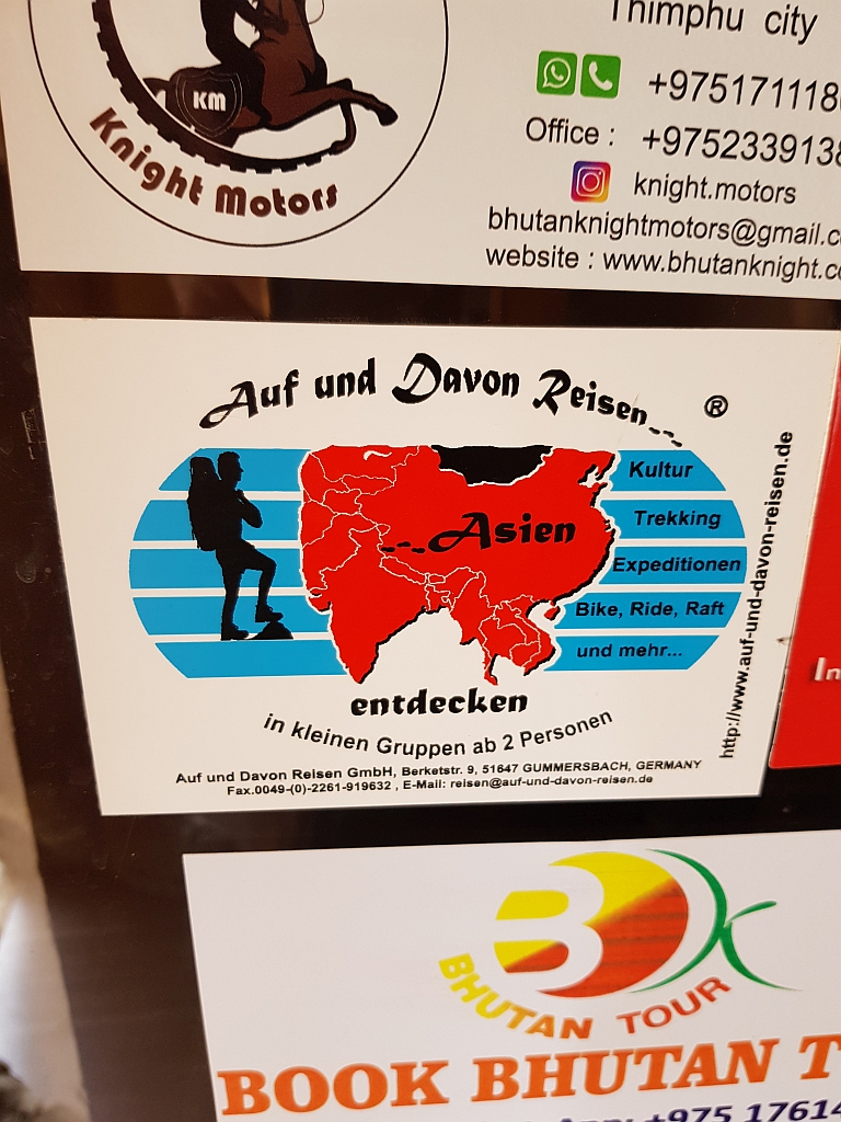Beim Herausgehen haben wir uns die oft an den Touristen-Restaurants an der Tür geklebten Aufkleber diverser Reiseunternehmen und Vereine angeschaut. Und dabei was aus der alten Heimat entdeckt.