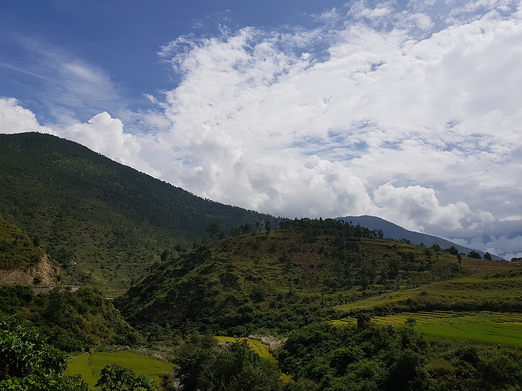 Gestärkt ging es dann auf die letzten 50 Minuten nach Punakha. Das Wetter wurde immer wärmer und sonniger.