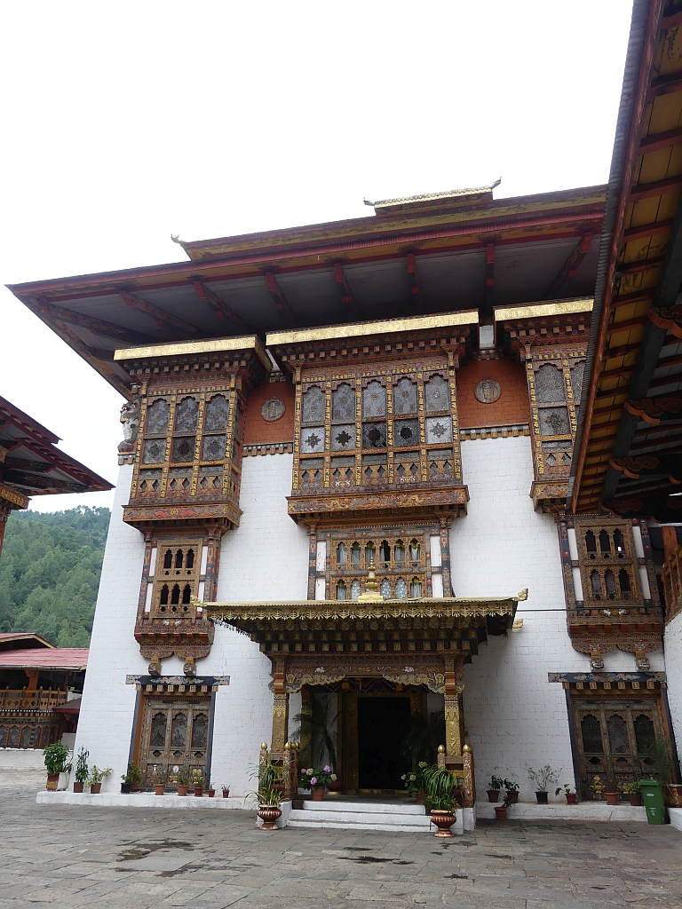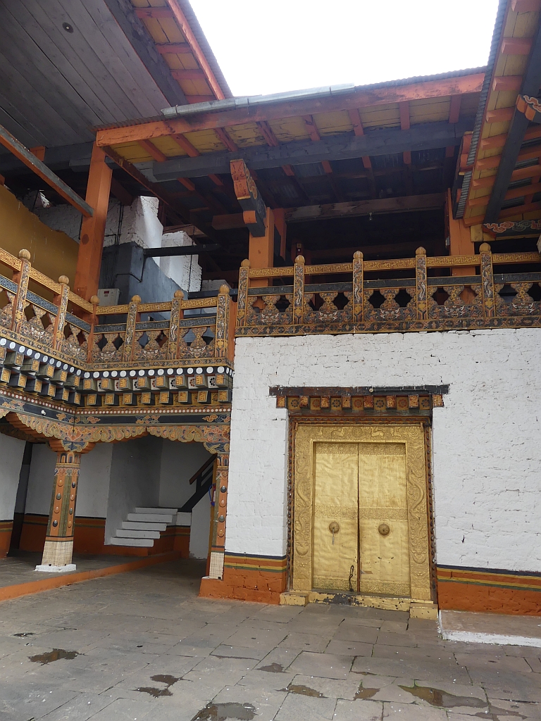 Im zweiten Innenhof findet man den Eingang zu zwei Hallen. Einerseits einer Halle, in die man nur zu bestimmten Festen reinkommt und in 1905 der damalige Könige Bhutans mit dem Orden des Knight Commanders von den Briten ausgezeichnet wurde. Dekoriert ist diese Halle mit einer sehr schönen, aber abgeschlossenen, Tür.