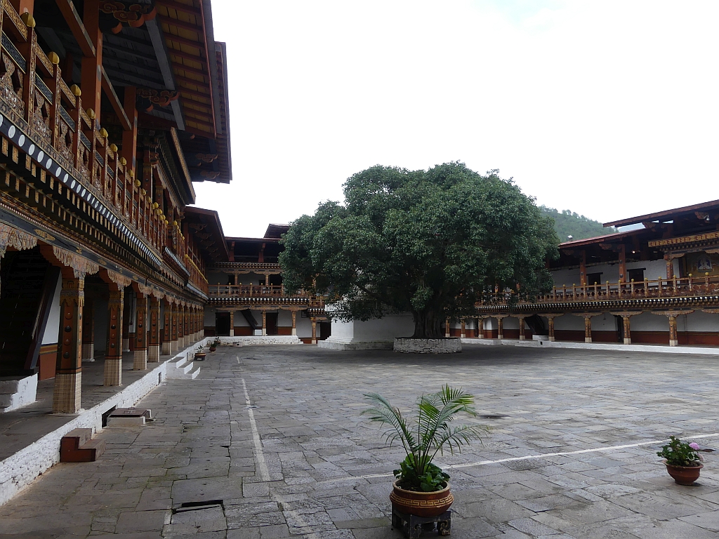 Im ersten Innenhof befindet sich eine Stupa sowie ein Bodhi-Baum.