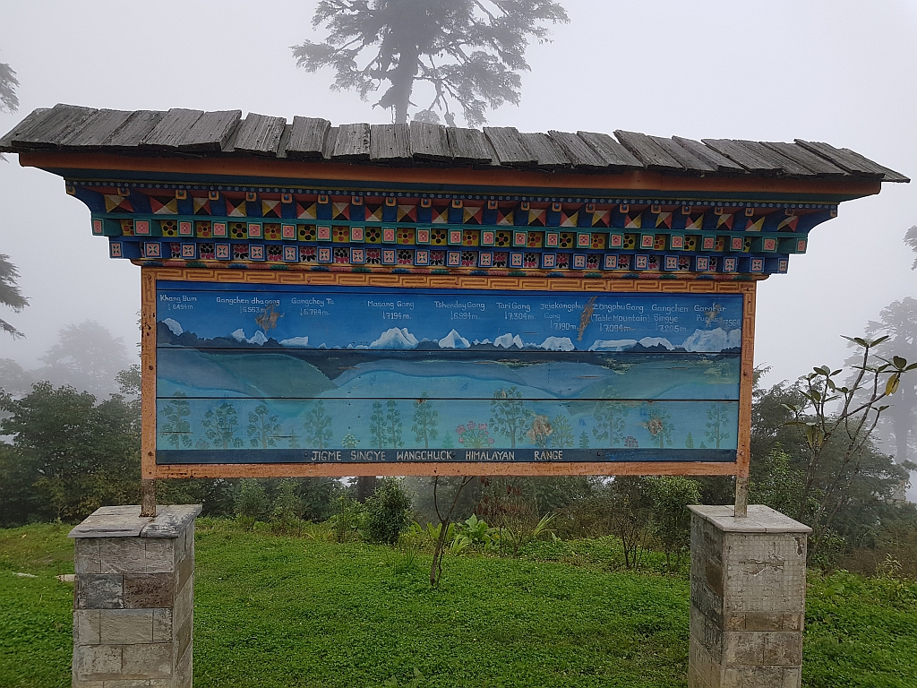 Nach einer Weile kamen wir wieder am Dochula Pass mit seinen 108 Chorten an. Und dem Ausblick auf die hohen Berge Bhutans.