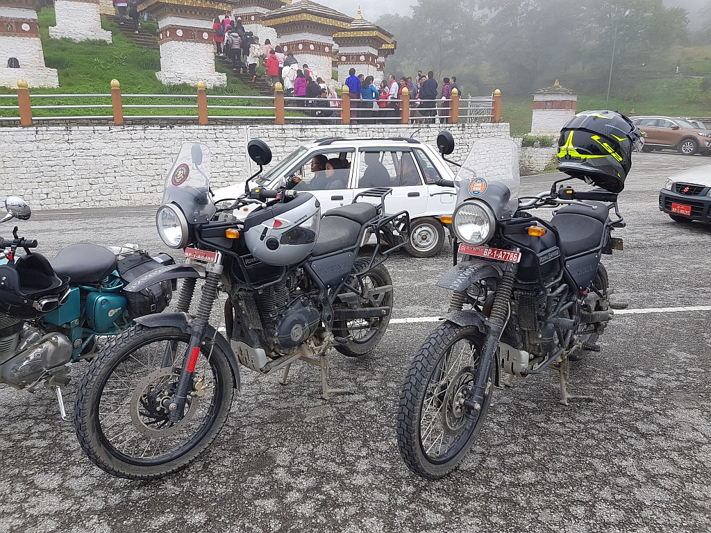 Diese Royal Enfields gehörten einer Gruppe von schweizer Bikern, die Bhutan von Ost nach West durchquert haben und die wir in Phobjikha schon beim Abendessen gesehen hatten. Haben uns dann kurz mit ihnen unterhalten und uns gegenseitig gutes Wetter gewünscht.