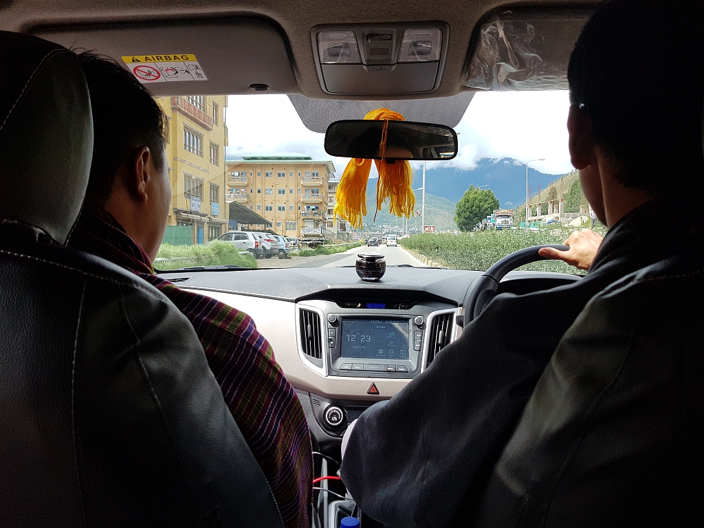 Dann ging es ins Auto und in Richtung Thimphu. Wieder auf der bequemen Rückbank und wieder die Landschaft beobachtend, die am Fenster vorbeizog.