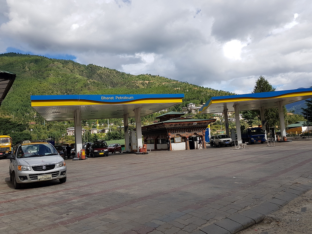 Thimphu hat ca. 120.000 Einwohner und liegt auf ca. 2.300 Metern Höhe. Durch das schon erwähnte Bevölkerungswachstum gibt es hier viel Wandel und es wird an allen Ecken und Enden gebaut. Zum Beispiel auch Tankstellen, die man sonst sehr selten sieht.