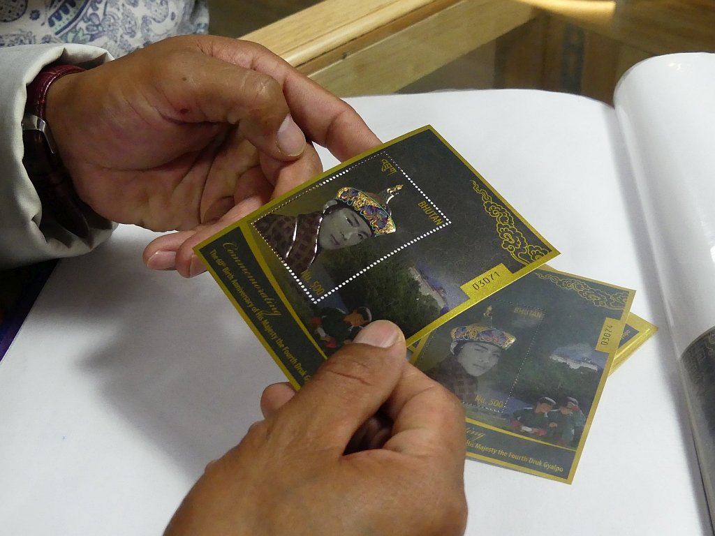 Eine Sonderausstellung gab es auch und sie diente der Sammlung von Frau Marion Hass aus München. Die Dame hat sich nämlich den Briefmarken Bhutans verschrieben und diese gesammelt. Einerseits durch viele Besuche in Bhutans, andererseits indem ihr einfach viele Menschen Briefe schickten.