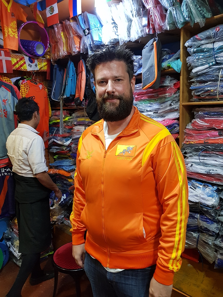In 3 Läden haben wir geschaut, ob es ein Trikot gibt und in einem davon gab es zumindest einen Trainingsanzug. Wobei das asiatische XXL nicht dem europäischen XXL entspricht.