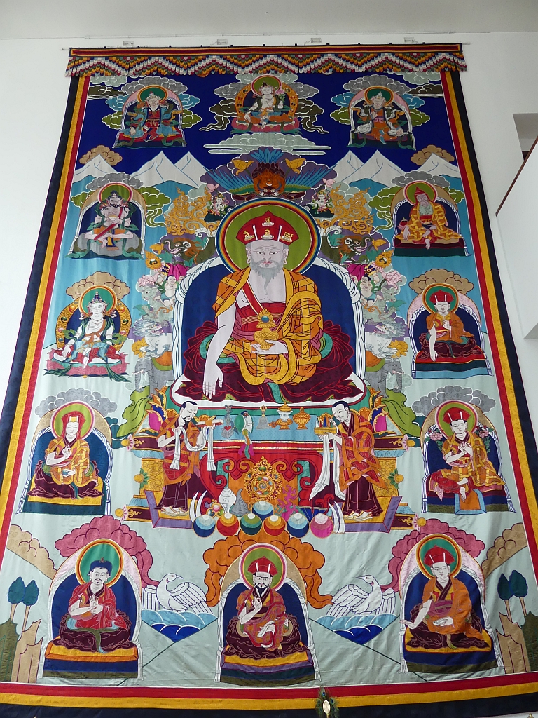 Einzig im Foyer kann man einen dieser riesigen Teppiche sehen, die in den Dzongs zu Feierlichkeiten von den Türmen gehangen werden. Und diese Türme sind wirklich hoch bzw. die Teppiche sind groß!