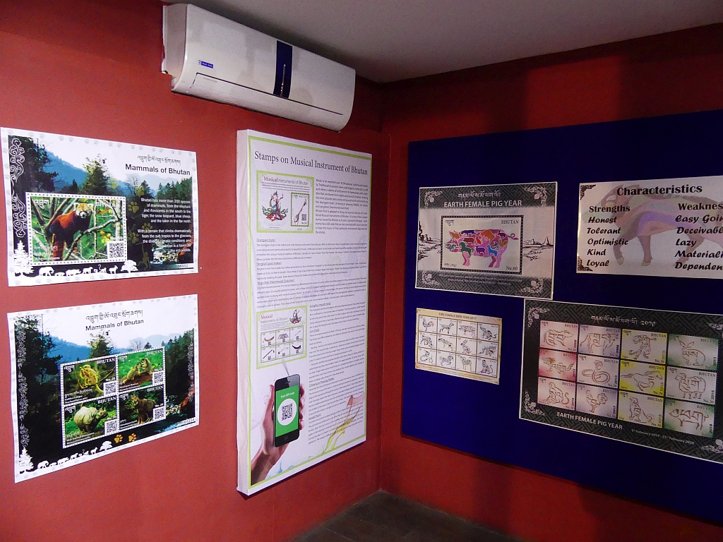 Es werden aktuelle Briefmarken Bhutans ausgestellt bzw. erklärt, was sie bedeuten oder zeigen.