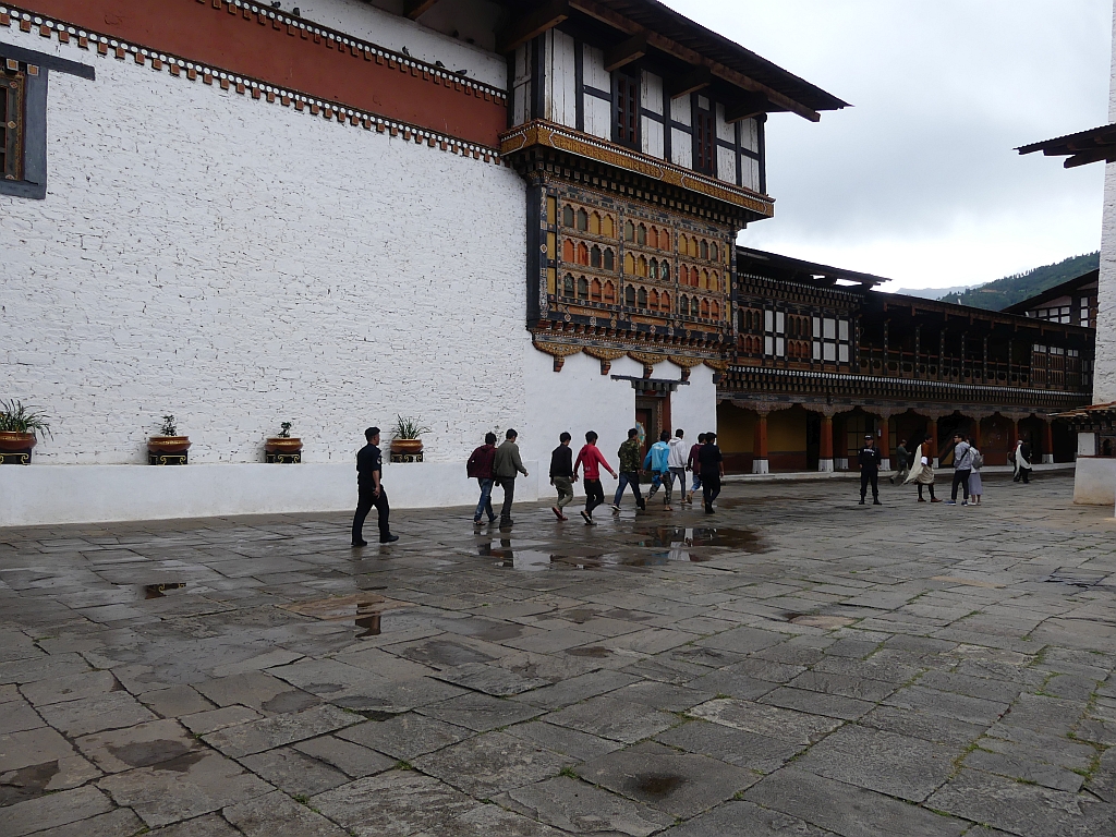 Auf dem Weg zurück zum Auto wurden wir daran erinnert, dass die Dzongs tatsächlich noch funktionell sind. Zum Beispiel als Gericht, denn es wurde eine Reihe von jugendlichen Gefangenen vor den Richter geführt.