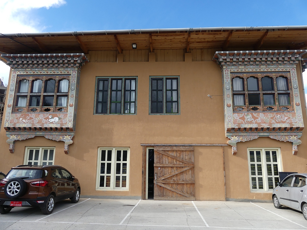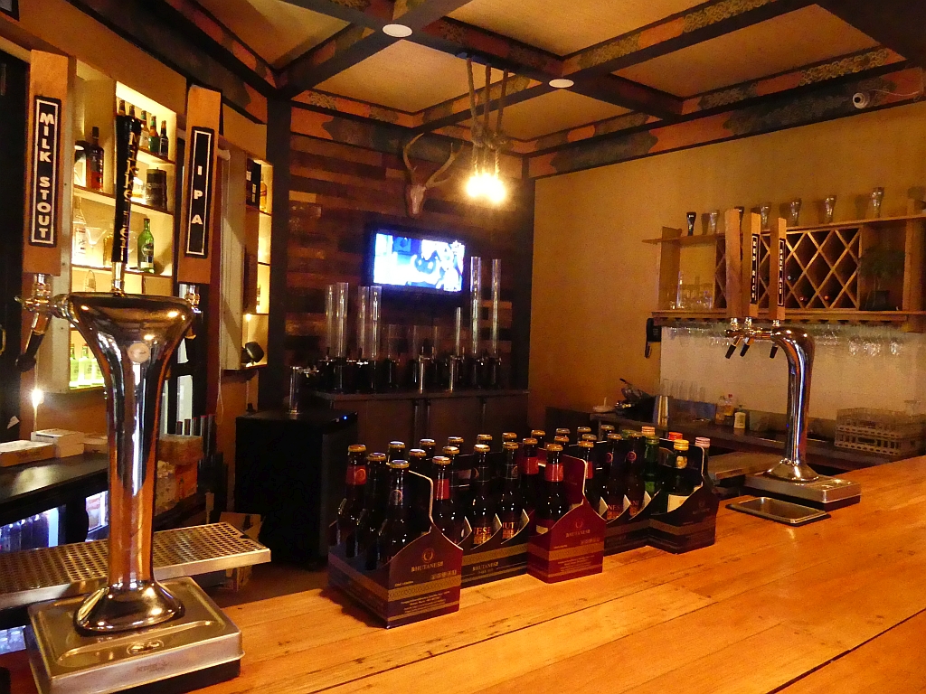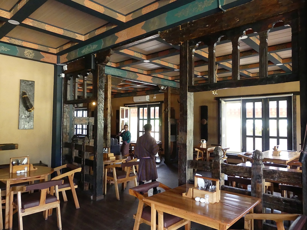 Die Brauerei hat auch einen Pub und der ist der Kracher. Wir haben ja schon das eine oder andere Restaurant hier in Bhutan gesehen, aber das hier war eine Mischung aus traditioneller Architektur und modernen Pub-Design.