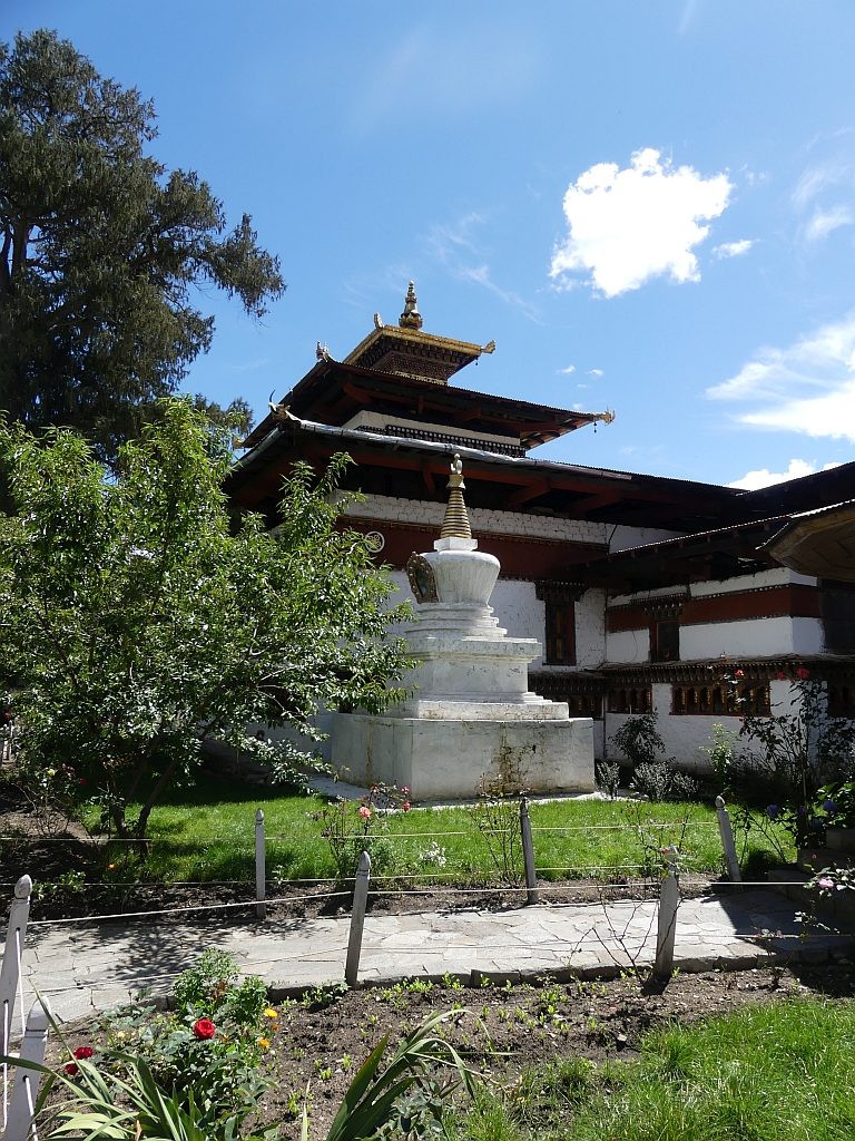 Dieser Tempel ist wieder etwas besonderes, da er in Form einer Chorte gebaut wurde, was in Bhutan total ungewöhnlich ist.