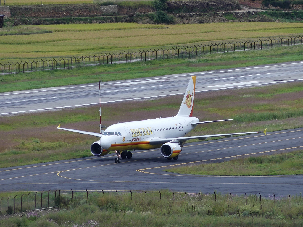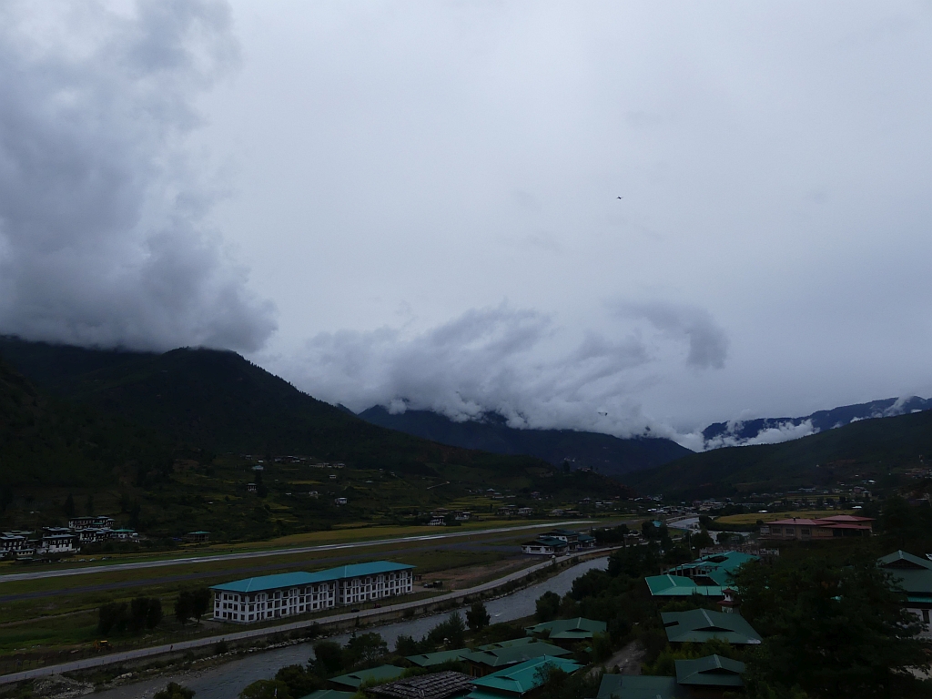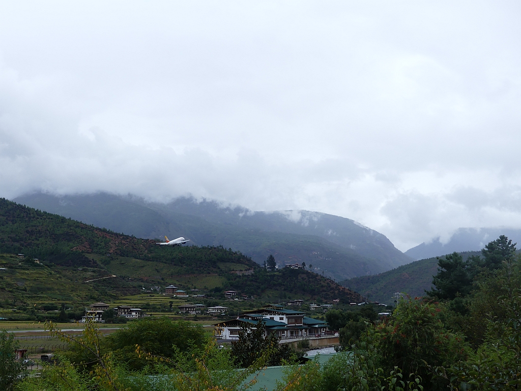 Jens hat dann allerdings über eine App mitbekommen, dass genau um 2 Minuten vor 10 ein Flugzeug in Paro landen würde. Das würde schöne Bilder geben, denn unser Hotel war mehr oder weniger direkt beim Flughafen und ein Aussichtspunkt nur wenige Meter entfernt. Weniger Meter höher, weswegen Meike freiwillig abgelehnt hat und lieber am Hotel gewartet hat und mit dem Auto nachgekommen ist.