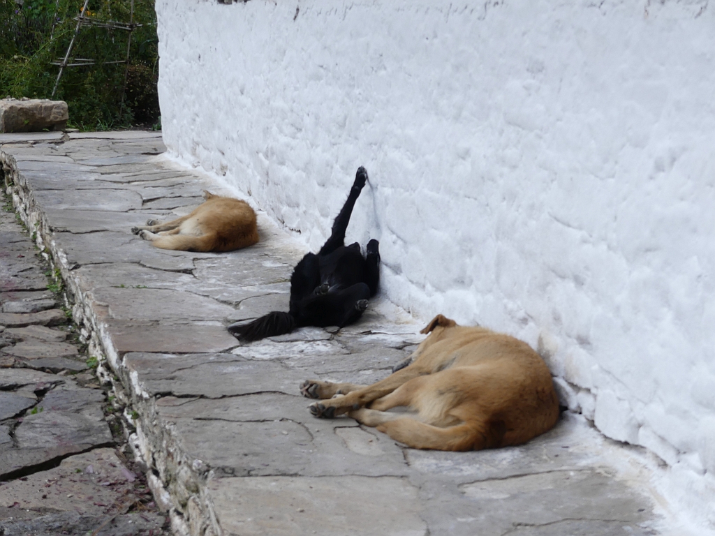 Außerhalb des Tempels das gewohnte Bild von Hunden (teilweise in merkwürdigen Positionen schlafend) und alten Menschen.