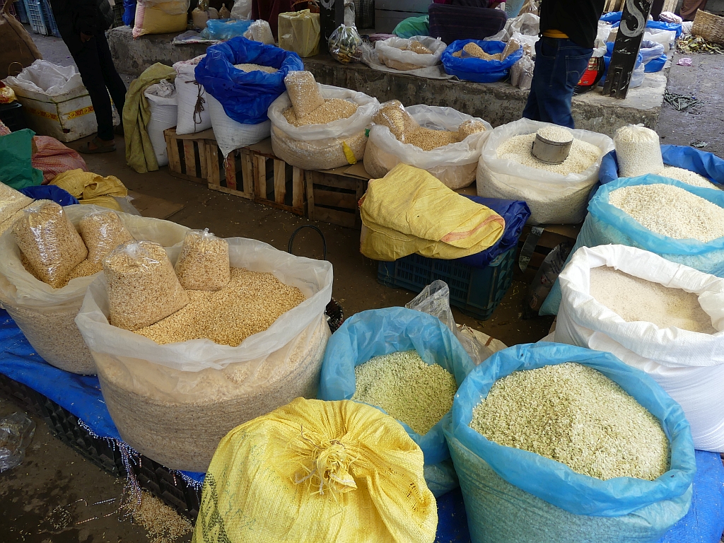 Danach ging es, das hatten wir Norbu auf dem Trek gesagt, auf den Markt. Wir machen das ja ganz gerne, weil dort das Leben spielt und man da manchmal viel mehr von einer Kultur oder einem Volk kennen lernt.