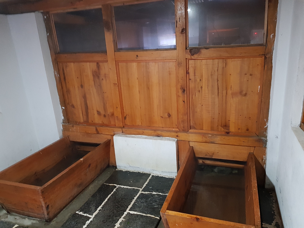 Selbige Steine kommen dann an die in den Gang reichende Wannen und erhitzen so das Badewasser. Dabei sollen sie Mineralien und Wirkstoffe abgeben und Schmerzen lindern, etc.