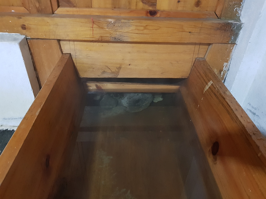 Pünktlich um halb 5 wurden wir dann wieder abgeholt und zum Bad gebracht. Die Steine waren heiß und das Wasser war vorgewärmt. Und wir konnten uns einen Raum aussuchen – haben uns dann für den mit Licht entschlossen … 😉
