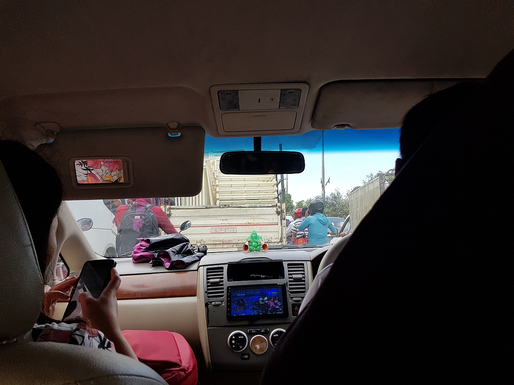 Und dann ging es durch den fiesen Verkehr Kathmandus wieder zurück in die Stadt.