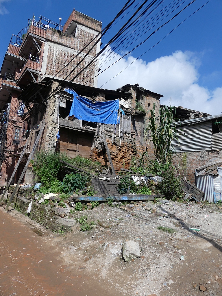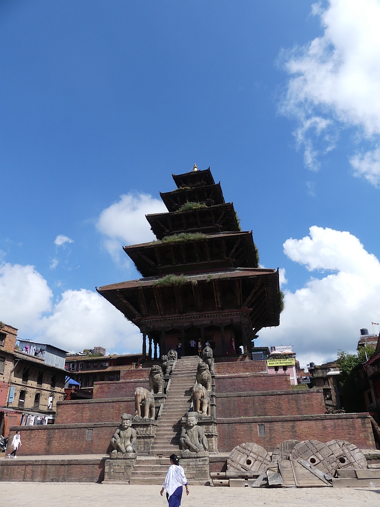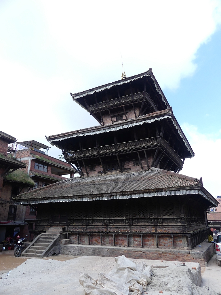 Bhaktapur hat unter dem Erdbeben im April und Mai 2015 sehr gelitten, denn viele Gebäude sowie zwei kleine Tempel sind dabei eingestürzt. Und viele Menschen haben dabei ihr Leben verloren.