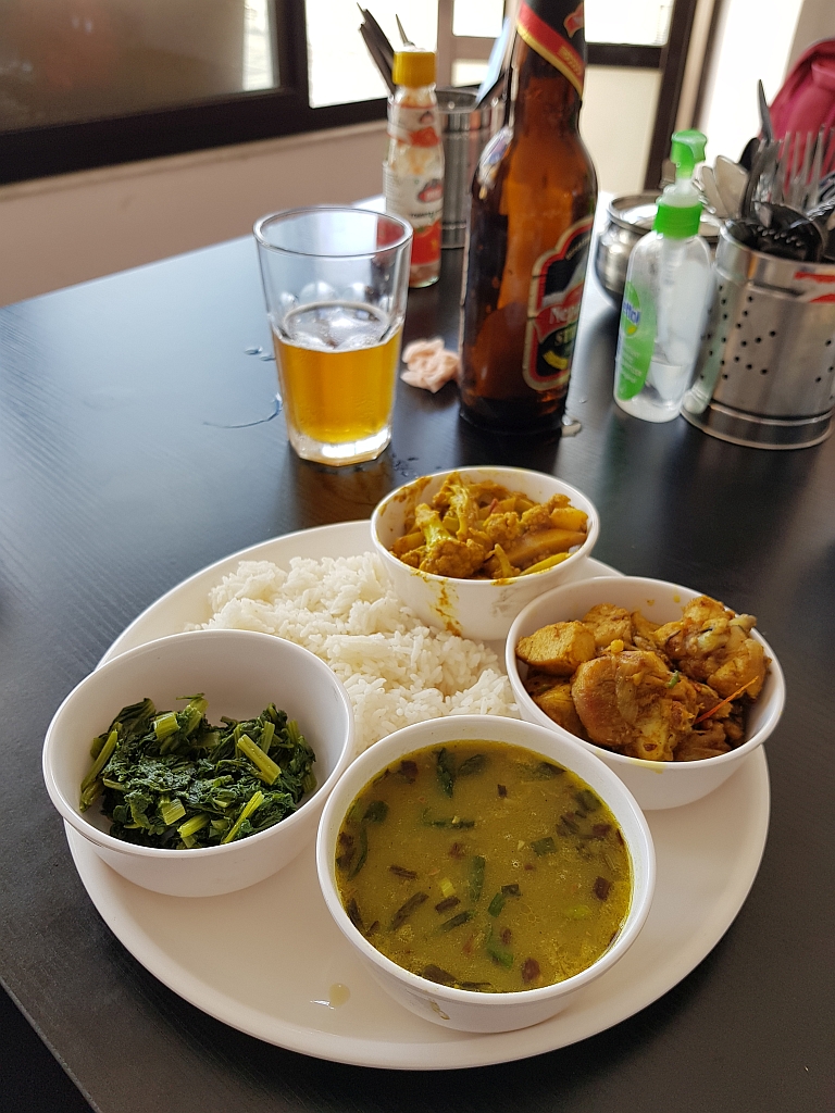 Wir hatten uns an Momos mehr oder weniger satt gegessen. Dazu gab es auch noch Bier, was ebenfalls zur Sättigung beitrug.