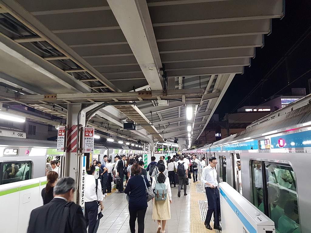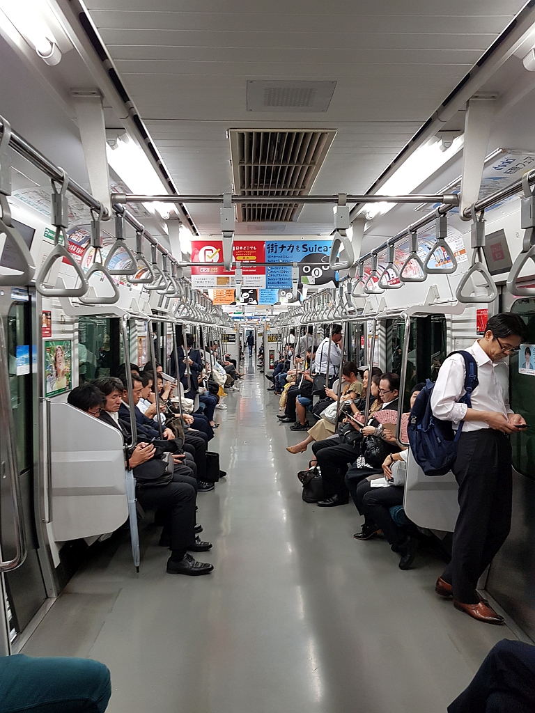 Nach Akihabara mussten wir aber mit der Yamanote fahren. Die jetzt langsam voller wurde …