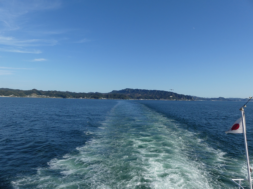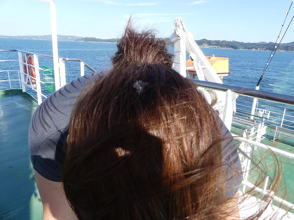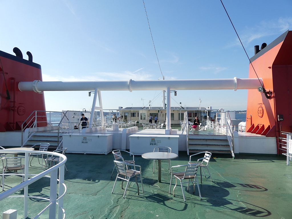 Fahrzeit war etwa 50 Minuten und währenddessen hatten wir es uns auf dem Deck in der Sonne gemütlich gemacht und genossen die Aussicht auf die Boso Halbinsel, Yokohama und die Schiffe in der Tokyo Bucht.