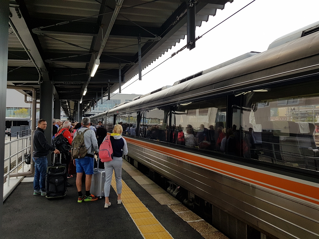 In den Zügen, die uns entgegenkamen, sah man eigentlich im ganzen Zug die Menschen stehen. Was angesichts einer Fahrzeit von 2-3 Stunden sicherlich auch kein Vergnügen war.
