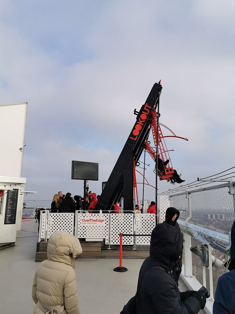 Auf dem Turm waren einige Buden (geschlossen) und erhöhte Aussichtspunkte mit den obligatorischen Fernrohren. Und eine „Schaukel ins Nichts“.