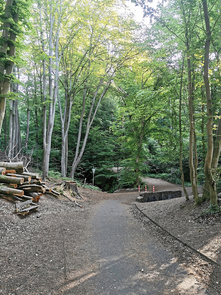 Und schwupps waren wir im Wald. Genauer gesagt im Milchborntal, wo Meike früher mit dem FC Bensberg ihre Runden gedreht hat. Der Sportplatz lag auch am Weg.