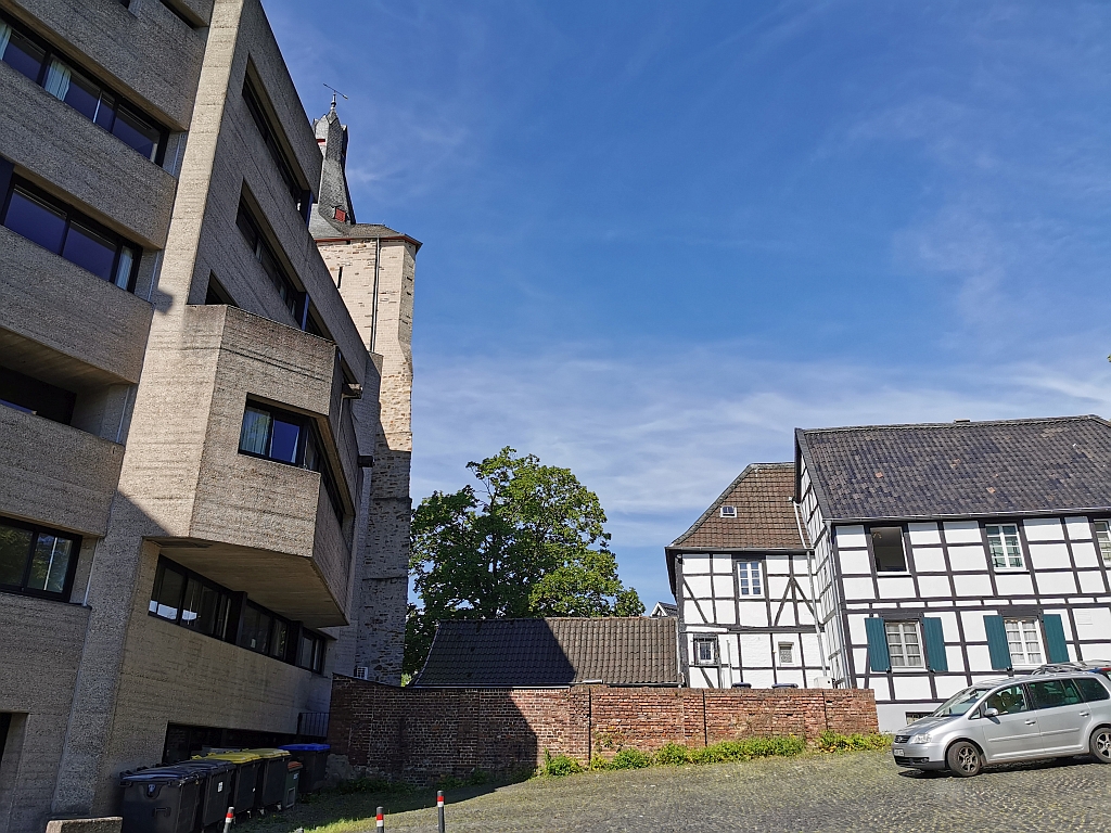 Und, es handelt sich halt um einen Rundweg, wir kamen von der Nicht-Burg-Seite des Bensberger Rathauses wieder zurück. Mit einem gewöhnungsbedürftigen Wechsel zwischen Tradition und Moderne. Der „Moderne“, die man in den 60er Jahren hatte.
