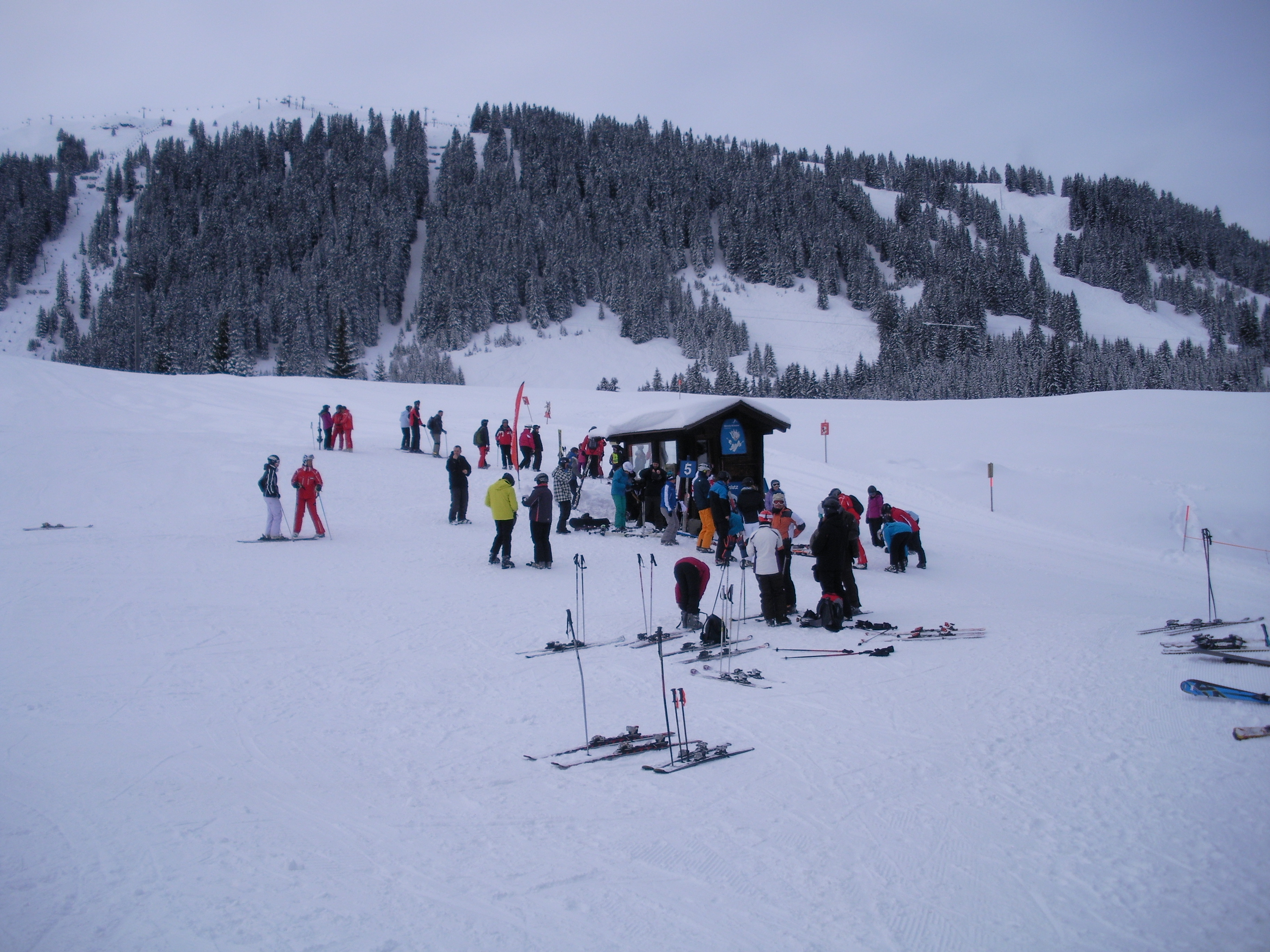 Zu dem Treffpunkt für den Skikurs muss man übrigens schon ein ganzes Stück Skifahren. Ist wohl so eine Art Vorab-Prüfung …
