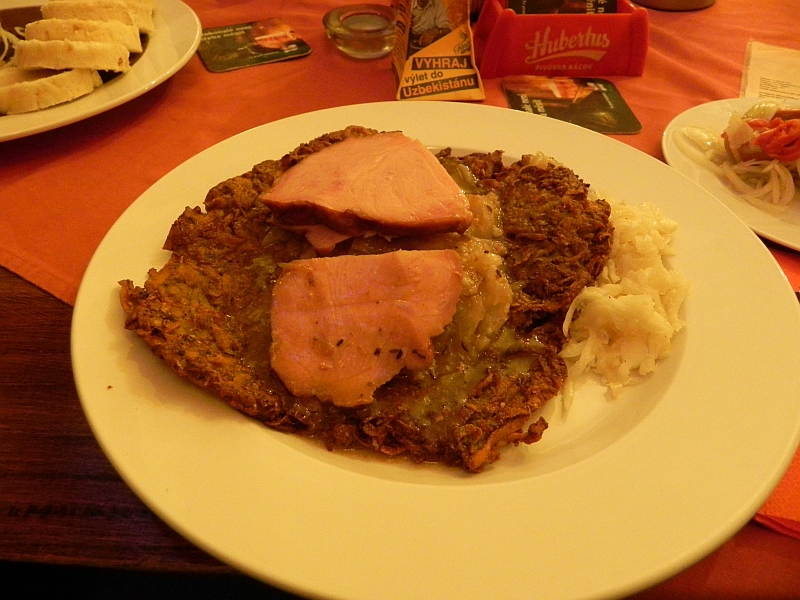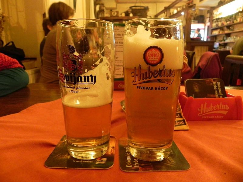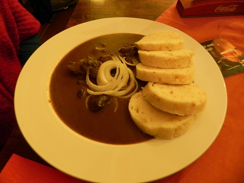 Nach einer Runde über die Karlsbrücke sind wir dann mit der Bahn zurück zu unserem Hotel gefahren und haben dort in der Nähe nach einem Restaurant gesucht. Eigentlich wollten wir in ein bestimmtes Lokal, haben es aber nicht gefunden. Als Alternative (und ein bisschen, weil wir keinen Bock hatten, weiter herumzulaufen) sind wir dann hier rein (weil wegen Karlsbrücke und so): Ins U Karla IV.