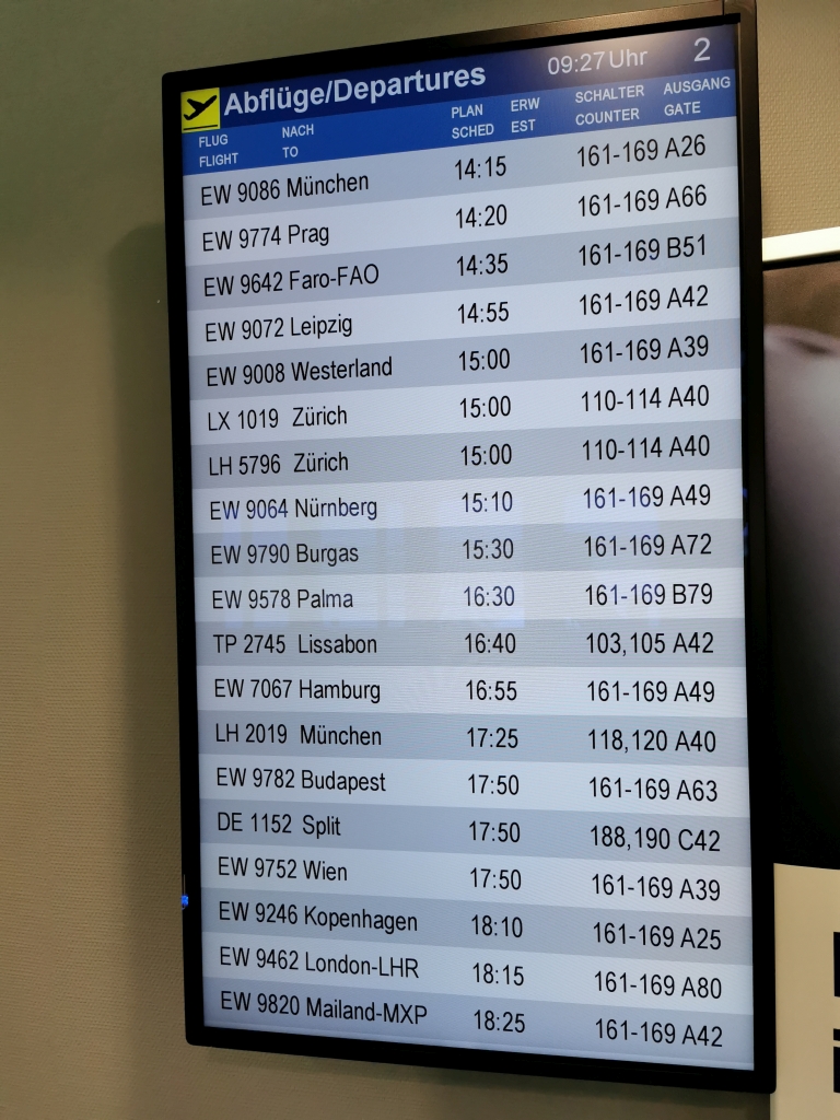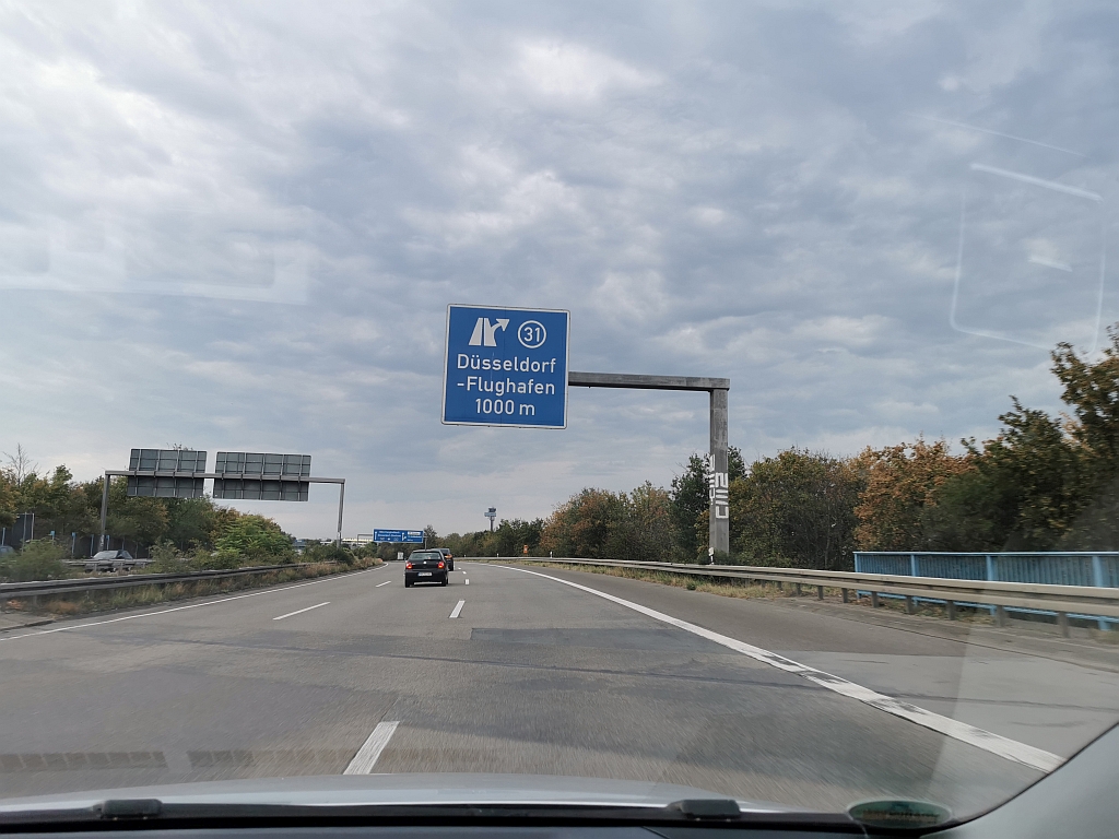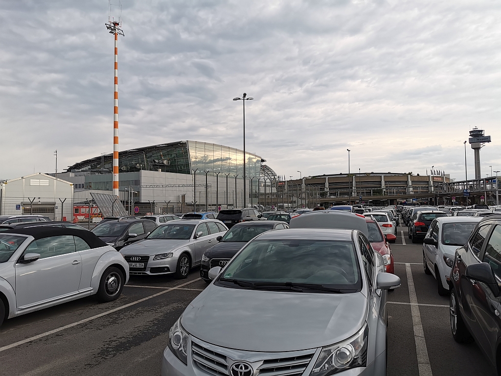 Auf einer überraschend leeren A3 und einer noch leereren A44 kamen wir in Rekordzeit an. Was gut war, denn unseren reservierten Parkplatz mussten wir erst einmal finden. Sonst stehen wir ja eher in den Parkhäusern am östlichen Ende des Terminals oder beim netten Parkroboter direkt am Terminal – diesmal waren wir auf der anderen Seite und da gibt es viele Einbahnstraßen. Und Baustellen. Und einen Parkplatz, wo man zu allem Überfluss auch noch an der Schranke einen Zettel vorfand, dass man doch bitte bei einer Nummer anrufen muss, um auf den Parkplatz gelassen zu werden. (Normalerweise kann man mit der Kreditkarte rein- und rausfahren und das Geld wird dann einfach abgebucht.