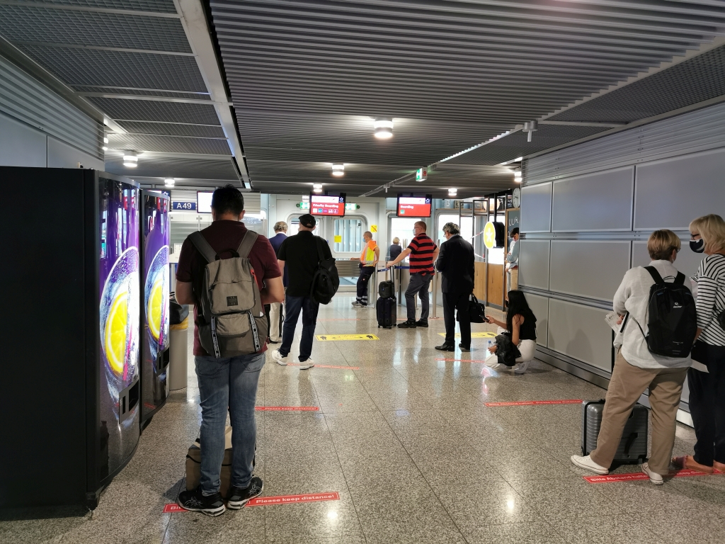 Das mit dem Abstand war aufgrund des überaus leeren Terminals kein Problem. Und Masken haben eigentlich alle getragen.